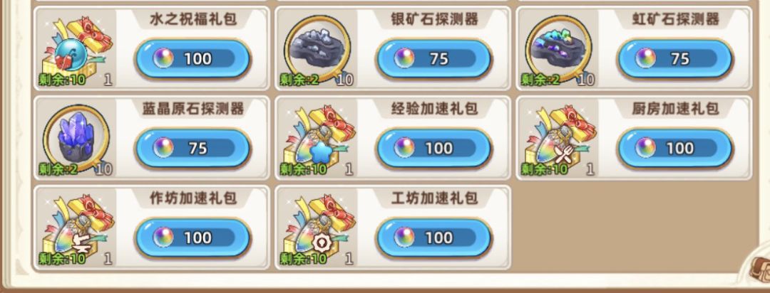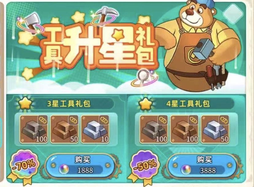 (必须四个人才可以下矿,每个人必须买证明和饭,一星矿镐最后的超级矿给了50磁石,每层只能放一次饭)