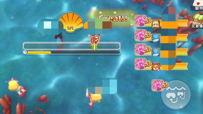 (神恩100,会出现密集贝类、有人Miss给的变少,一次密集贝类可能有两次机会,第二次全捉到给了3个、第一次全捉到给了5个,规律暂时没找到)
