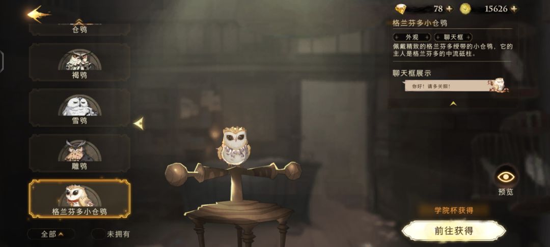 猫头鹰邮局购买或幸运转盘获得,切换猫头鹰可切换聊天框样式,无对战加成