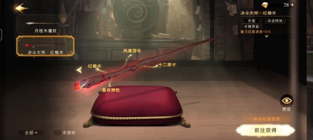 奥利凡德魔杖店购买或幸运转盘获得,魔杖有对战加成