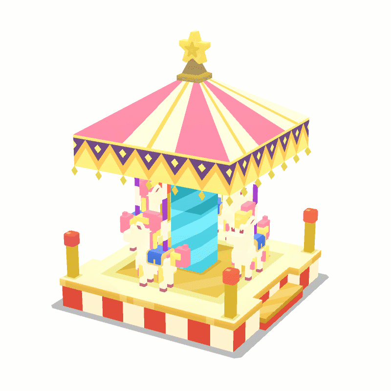 四只小火马围绕着舞台中心缓慢旋转,上下跳动着流露出满满的动感与梦幻,若是能在营地中摆上它,想必能成为万众瞩目的焦点~