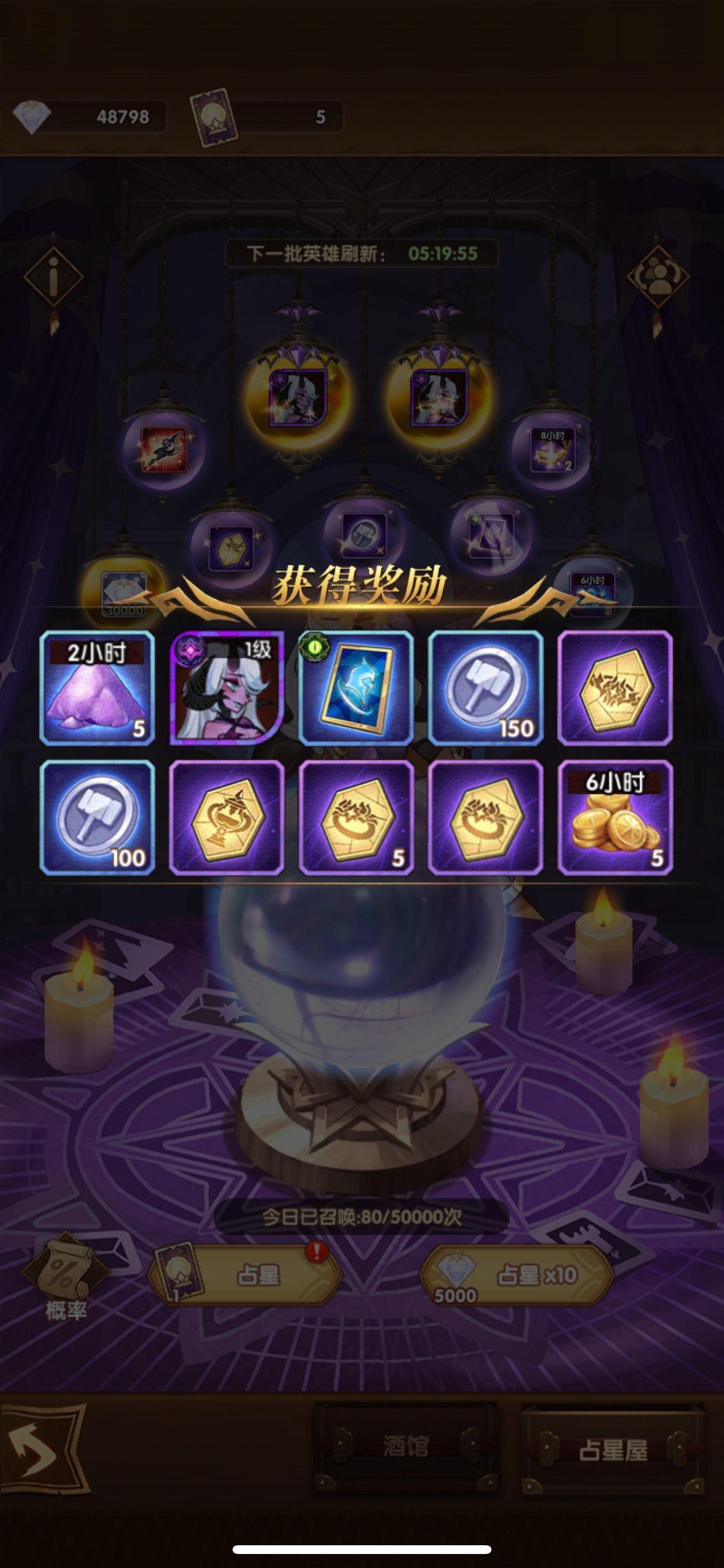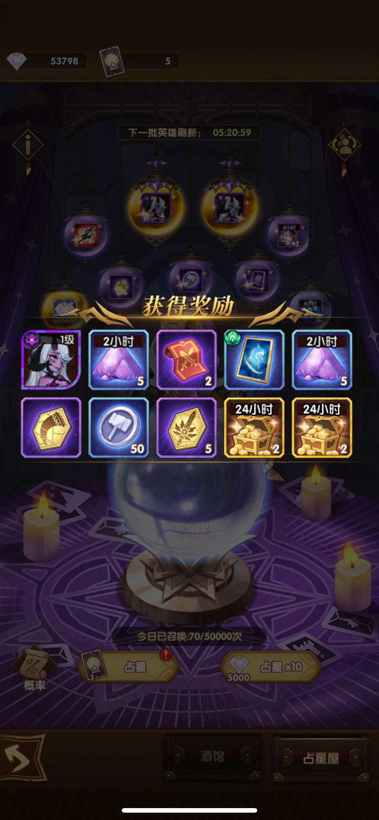 成长二+奇景和攒的20抽占星,抽到了八个魅魔(中间一次3w钻)