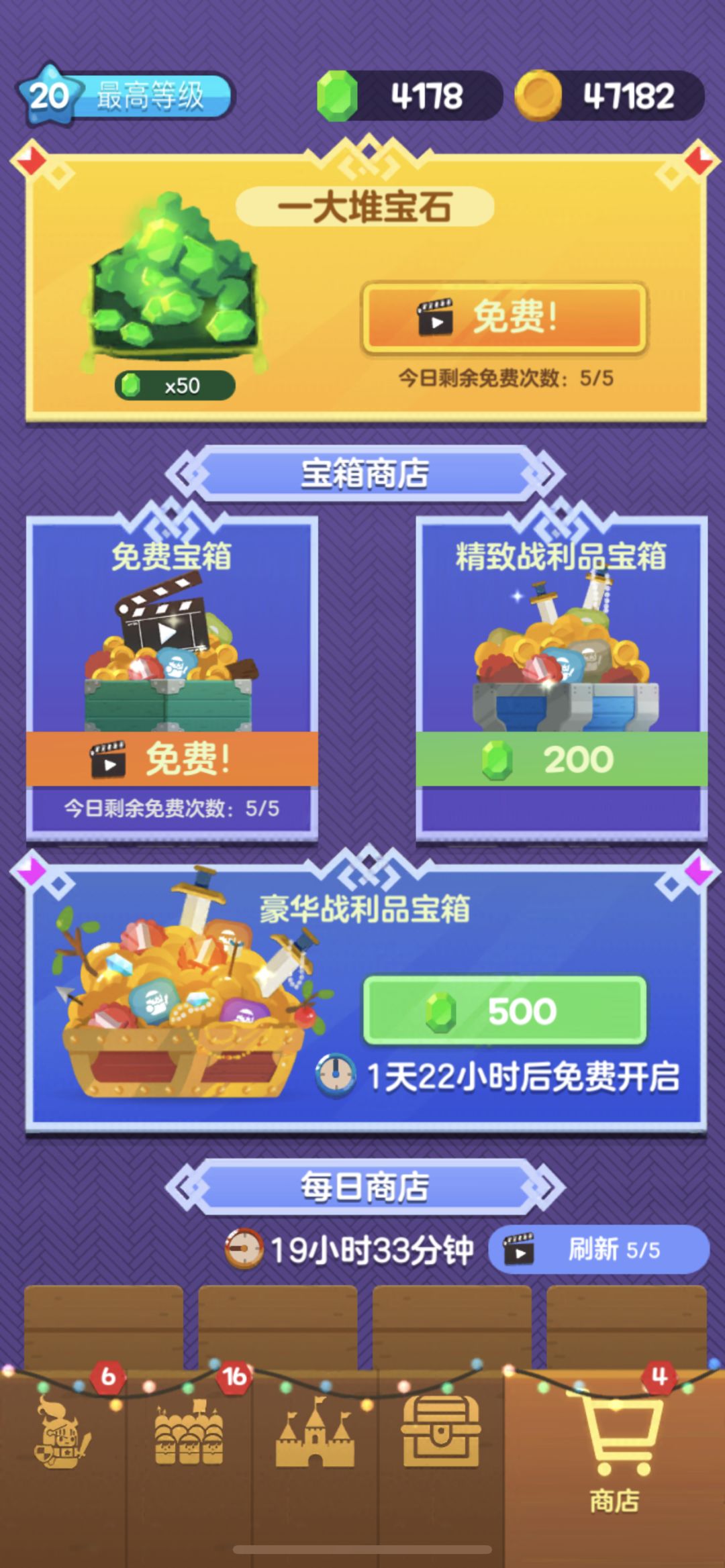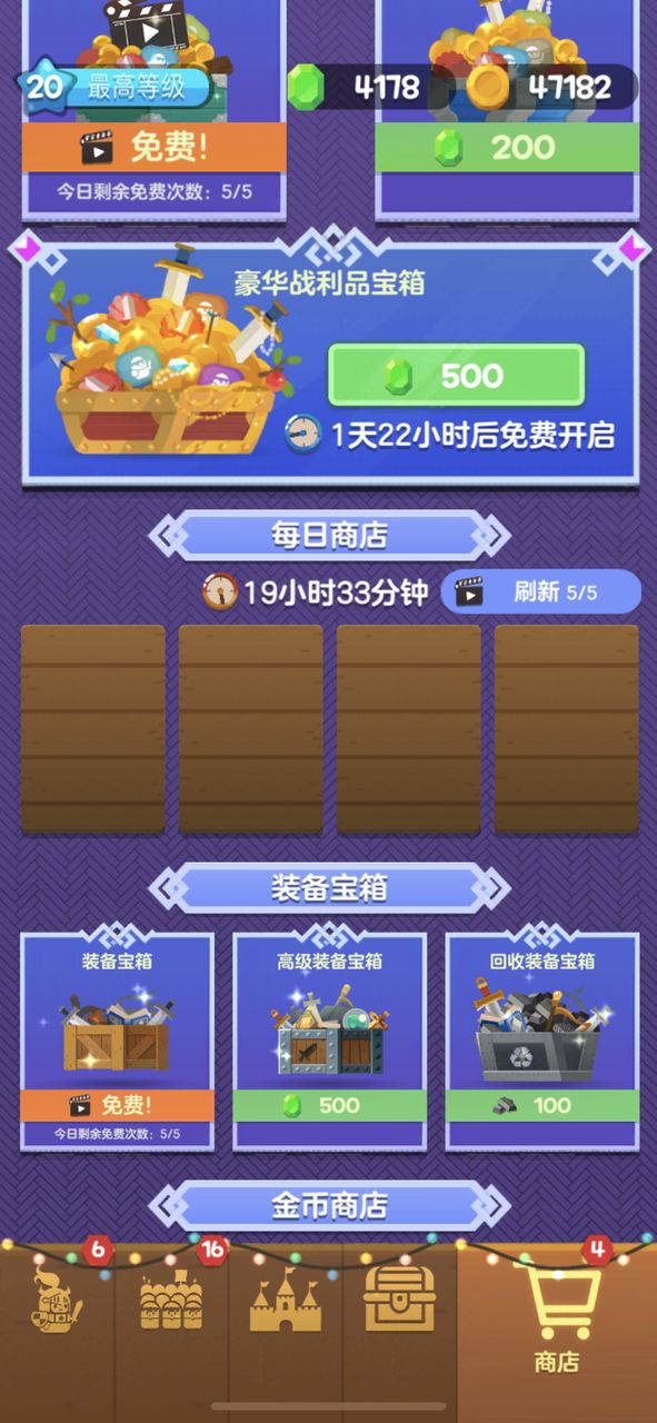1、金币商店,每天同样有5次免费金币可以领哦。