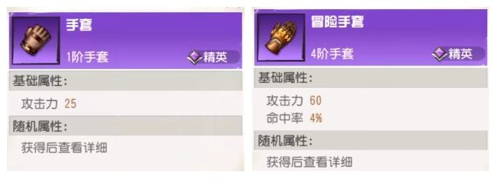 在《弹幕枪王》中,装备自身属性受到“阶级”与“品级”影响,玩家在前期可以简单粗暴按“阶数”和“装备颜色 ”来判断是否更换新装备。如下图所示,同样的“紫色”装备,1阶与4阶攻击力相差1倍有余,高阶装备还多了其他属性。