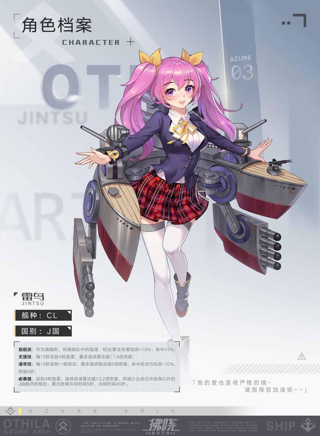 「温柔的女武神,貌似可爱的双马尾二妹。实际略带腹黑,擅长搞怪,性格活泼好动,但运动能力一般,有着“天然的谋略家”的一面。看似不着边际但训练时相当刻苦,发言往往容易切中要害,当然毒舌能力也是如此。」