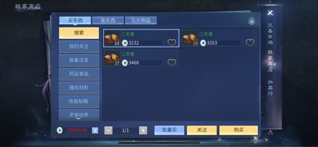 拥有了启动资金,就可以进行一定的投资了,可供囤货的选择非常多,例如吴山石,家园币,特供币,还有50到85的技能书。