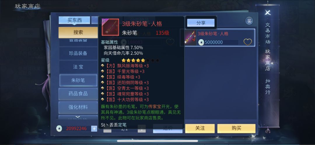 偶尔记得去采采白泽之毫、青鸾之羽、麒麟之鬃这几样制作朱砂笔的道具,有时候属性好的低星笔也是值不少的!