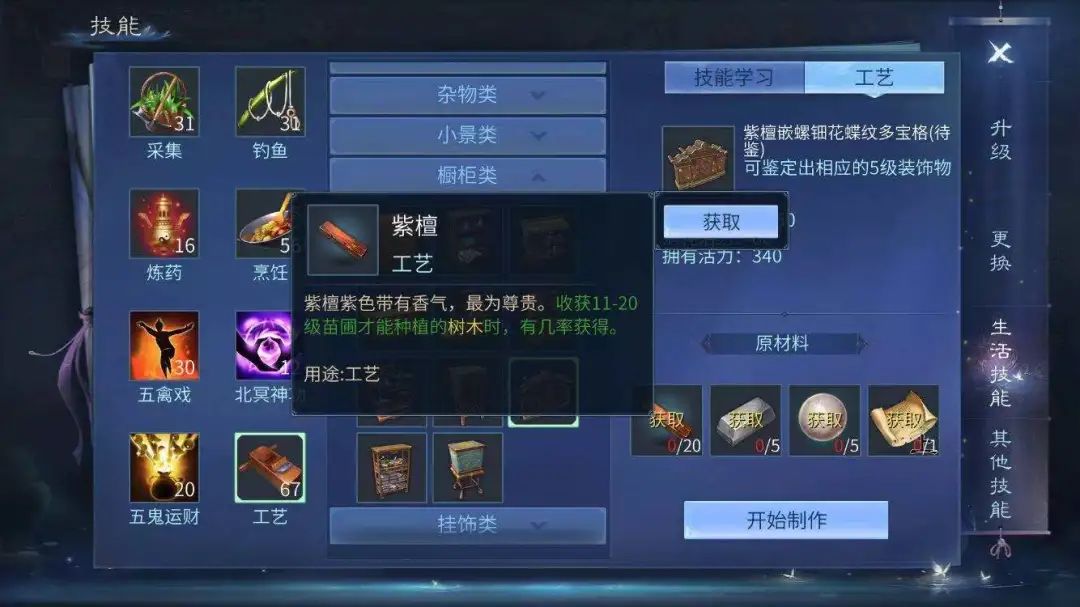 这段期间要做的就是疯狂吃货运升级工艺,50级工艺就可以制作5级家具了,5级家具大部分都需要消耗紫檀,所以即便要囤也可以提前囤紫檀!