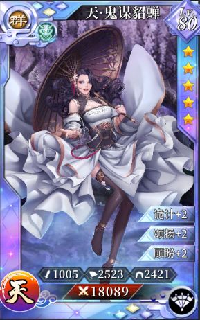 鬼谋貂蝉对群雄单核队伍辅助能力较强,可以加强队伍内单核的生存与输出,同时具有一定的限制敌方行动的控制能力。