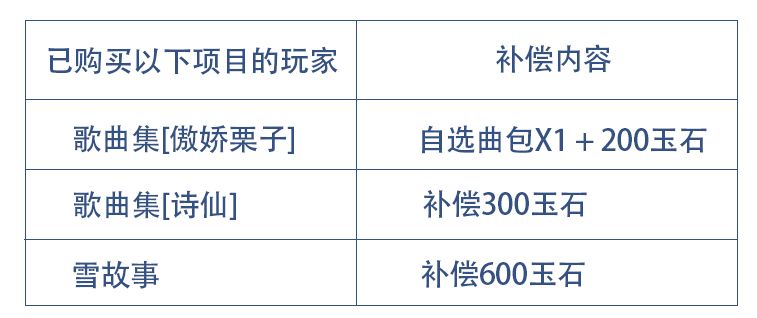 备注:该补偿仅适用于已购买该曲包的玩家,如果是以前赠送的曲包和故事,不支持补偿。