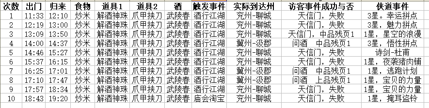 说好的问酒1级食物定向冀州兖州出行记录