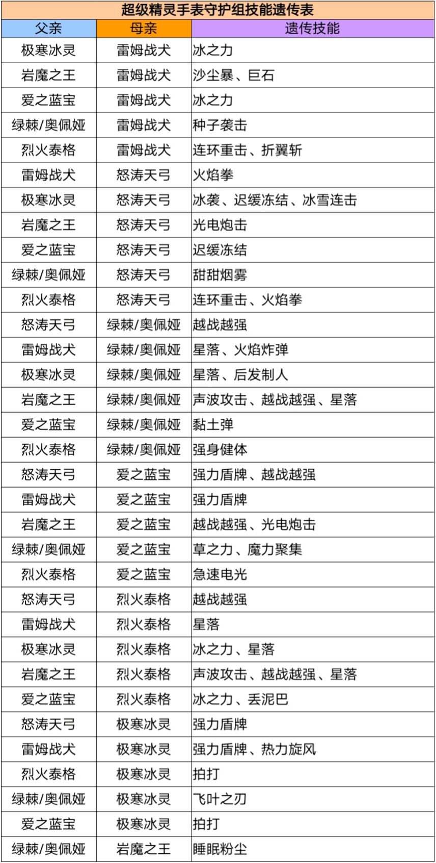 孵蛋攻略-遗传表