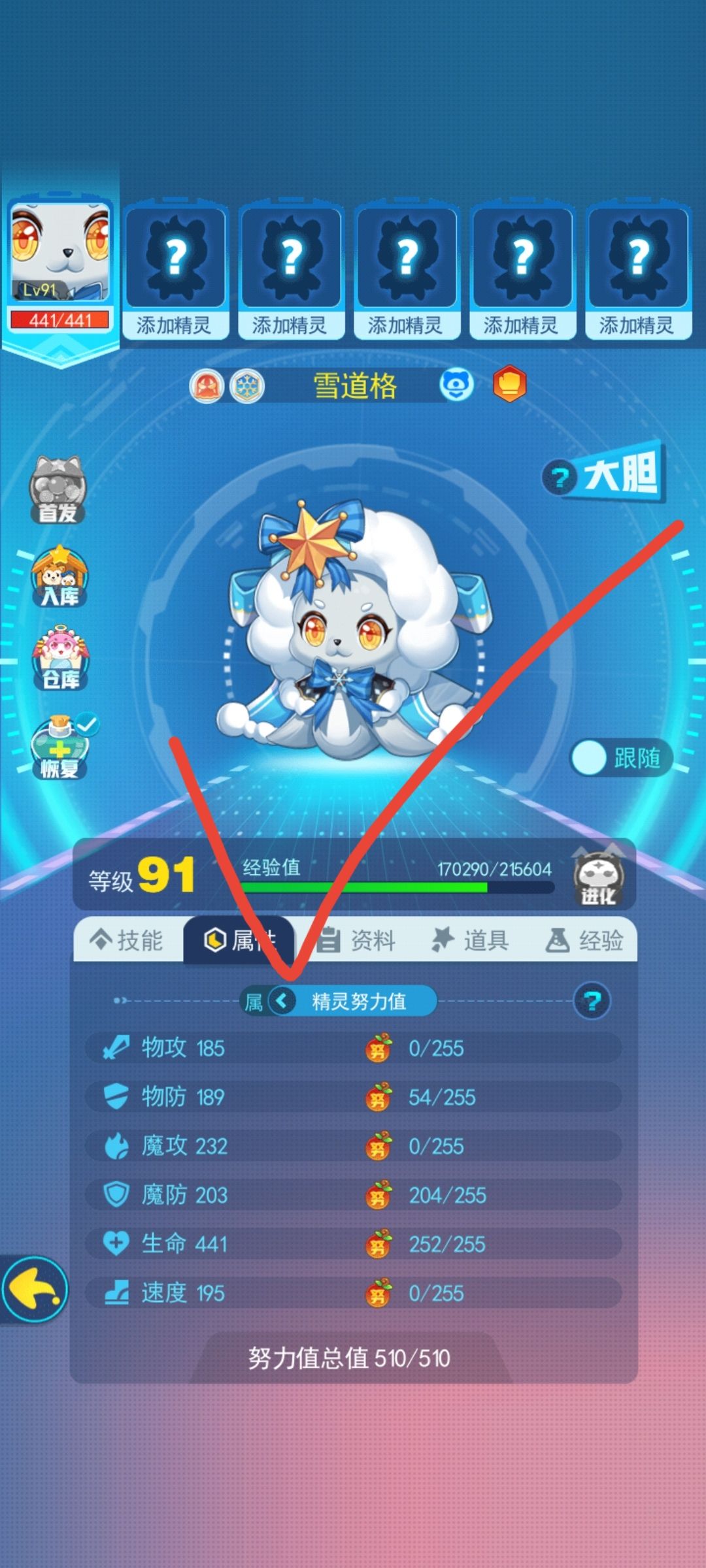 (大家有兴趣可以看看我之前发过一个雪道格的玩法里面有努力值性格和天赋值的截图)