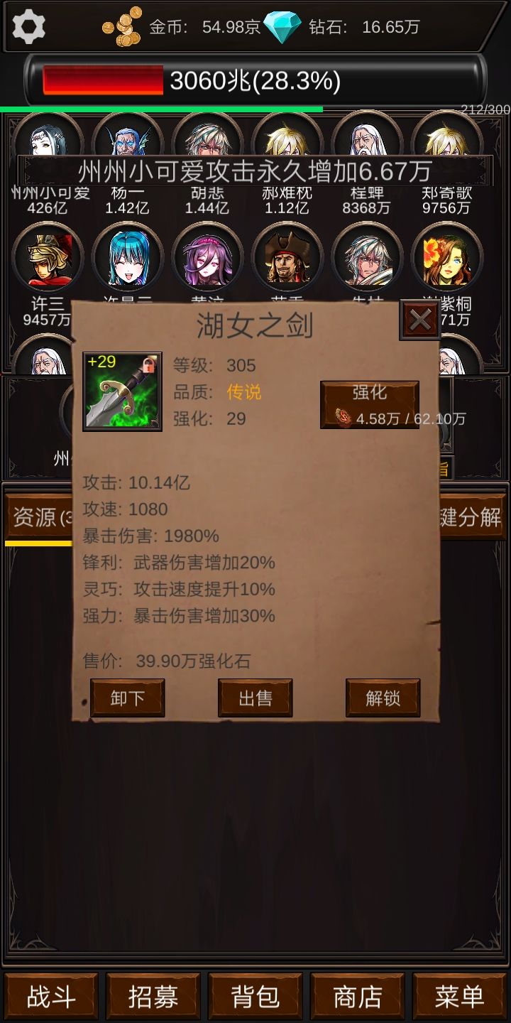 玩了很久才到3,给点新手意见,装备有附加暴击和攻速的可以强化满级,最极品的佣兵技能是主角5%攻击、10%暴击,其次就是加钱%,其他技能到后期感觉没啥用,攻速2%也还不错,我才幻境3,攻速就0.05了,应该是最高攻速了,后期也许一把武器就能让攻速0.05,所以技能加攻速没啥用,砖石技能,一个技能一天才2000钻石,点一下强化都几万强化石。全体加攻速、暴击和伤害的,觉得浪费,因为主角跟佣兵悬殊太了,我现在主角攻击一下3兆,然后最厉害的佣兵加10倍伤害才300亿,才5%的几率,所以全体技能是浪费。强化技能也可以,但是有上限。资源减时间技能也感觉没啥用,现在一个装备出售都几百上千的强化石,有就点满。还有什么技能忘记了,反正后期的话,我就推荐三个技能,主角5%攻击、10暴击和加钱。游戏挺不错的,我这把武器是刚刚幻境2最后一个BOSS给的,才升到29,就能打过幻境3的最后一个BOSS,呵呵。