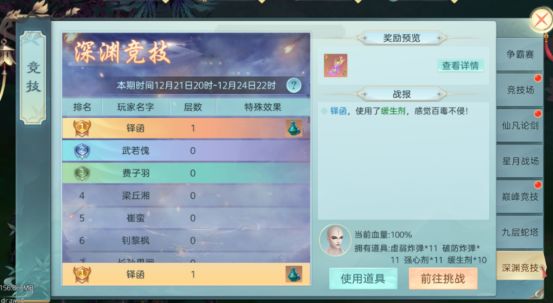 【玩法说明】开放时间:每周2期,第1期时间:周一至周四;第2期时间:周五至周日。少侠需要在活动开始当天的前3天内至少登录游戏1次才可获得挑战资格。副本为竞速挑战PVE模式,活动开始后,最快达到18层的玩家即为第1名,以此类推。玩家在挑战过程中会获得特殊道具,可以减少自己的挑战难度或者增加其他玩家的挑战难度。