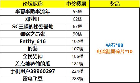 幸运奖(10名):钻石*88,电流醋栗碎片*10
