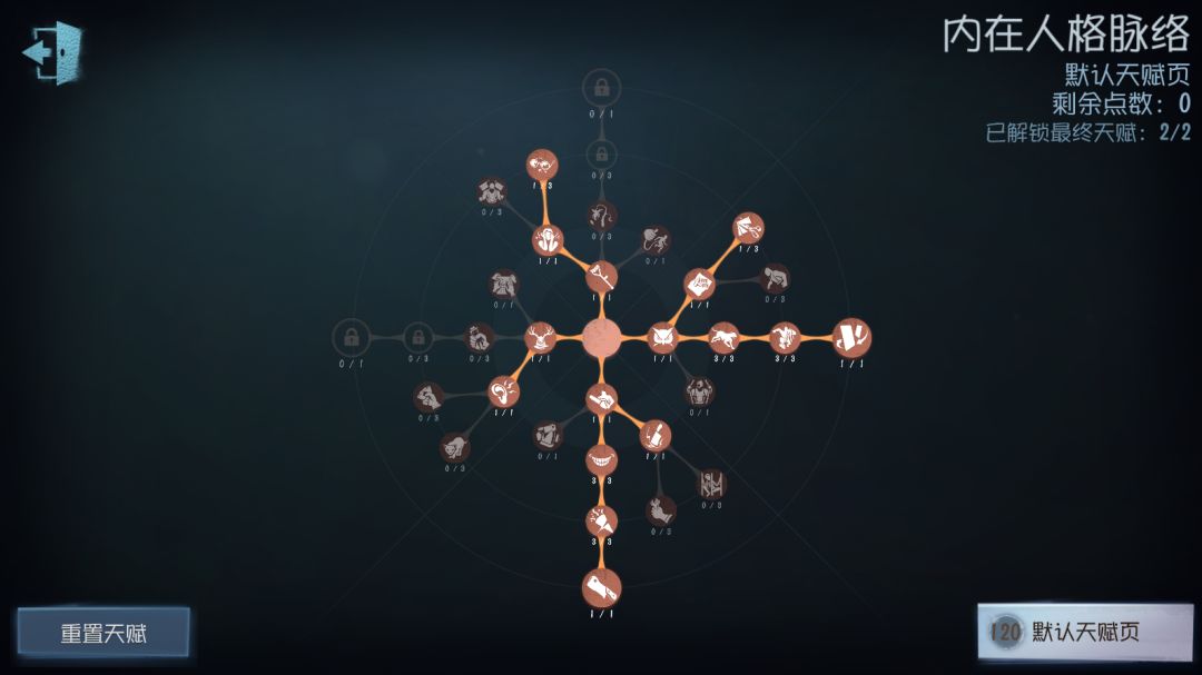 这套天赋中没有【破坏欲】带来的摧毁木板的加速效果,因此对玩家的爱猫命中率和板区博弈能力有较高的要求。点出【底牌】,可以根据求生者阵容来选择不同的辅助特质,后期根据场上局势来切换辅助特质。