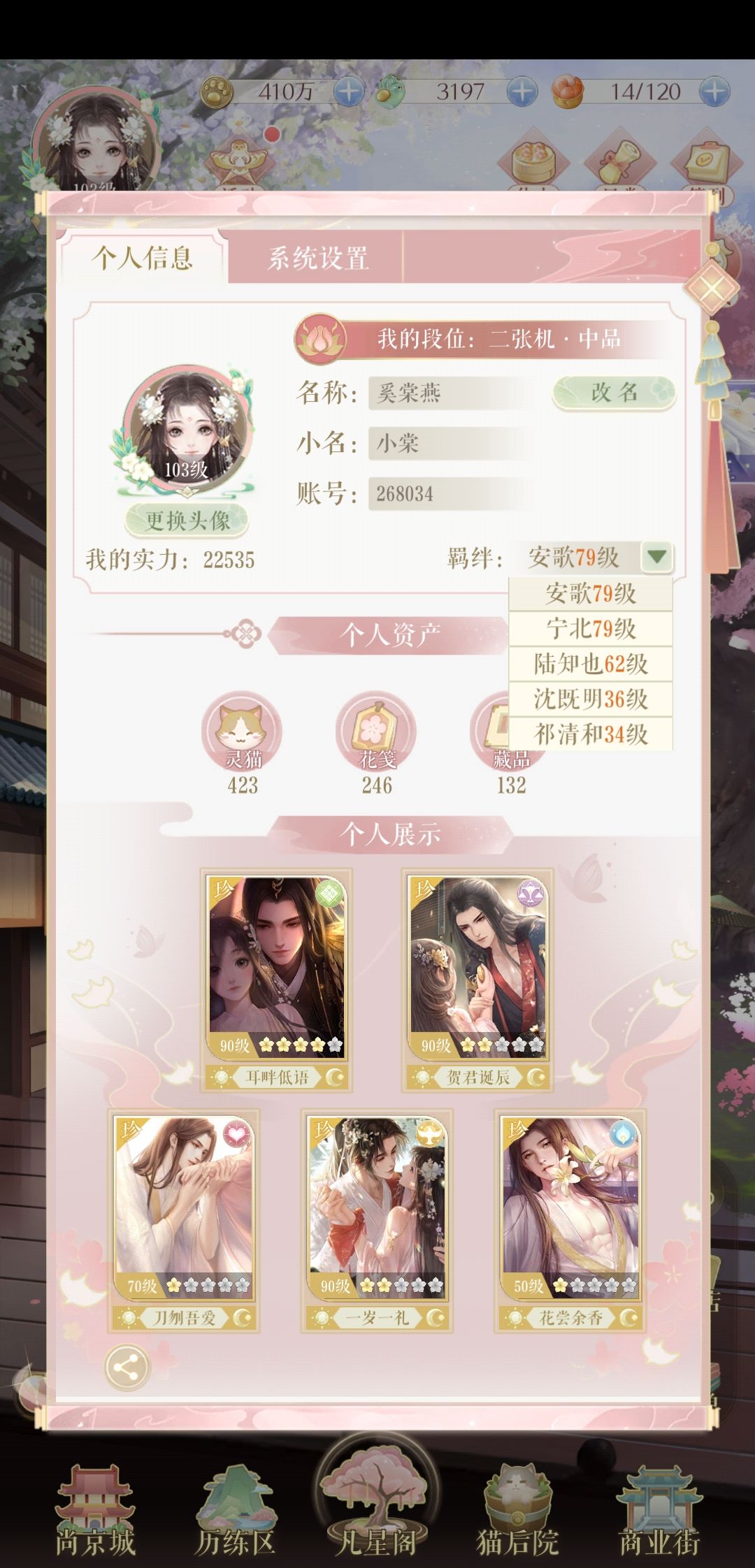 后面喜欢上小十六和安歌,配音大大给的感情非常到位!真的有种在和我对话的感觉。不过剧情/心语内容非常少。卡牌的话,金卡除非堆到高星,不然还是用茶叶买紫卡养起来比较划算。茶叶富余了之后再集中换一张金卡。