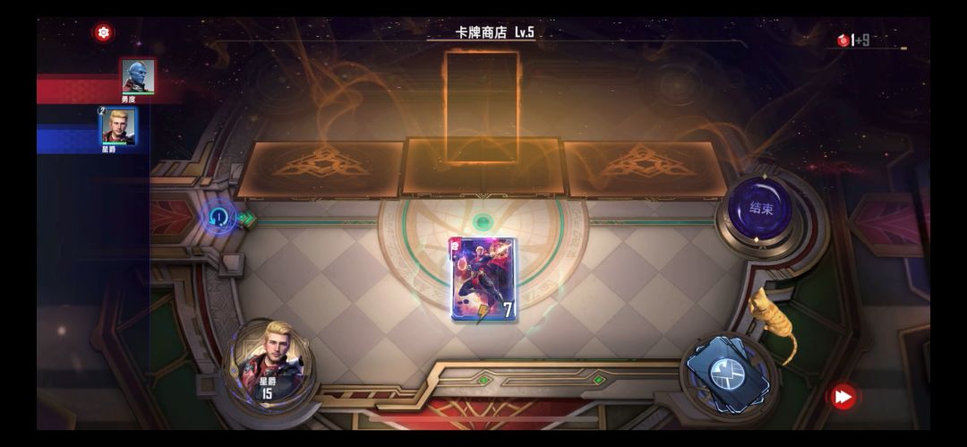 购买星鹰(特性是凯旋 战斗胜利后,商店里的“银河护卫队 ”卡牌价格-2)