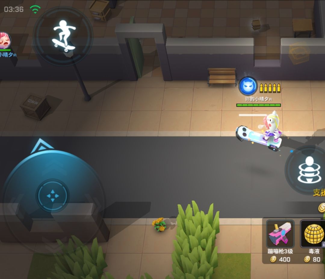 第一种,蹦蹦枪,众所周知,蹦蹦枪的伤害是一炮66,伤害排第二了,而且配上滑板可以贴脸打,快速秒杀,同时,可以预判走位,因为蹦蹦枪是远近程武器。