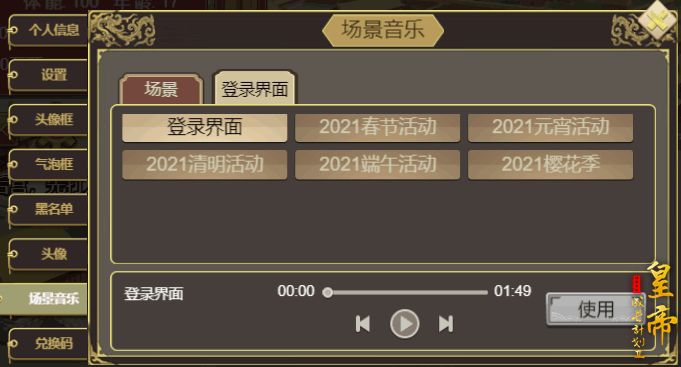 收录了2021年清明节、端午节等活动的背景音乐,可以自由替换为游戏登陆界面的默认音乐