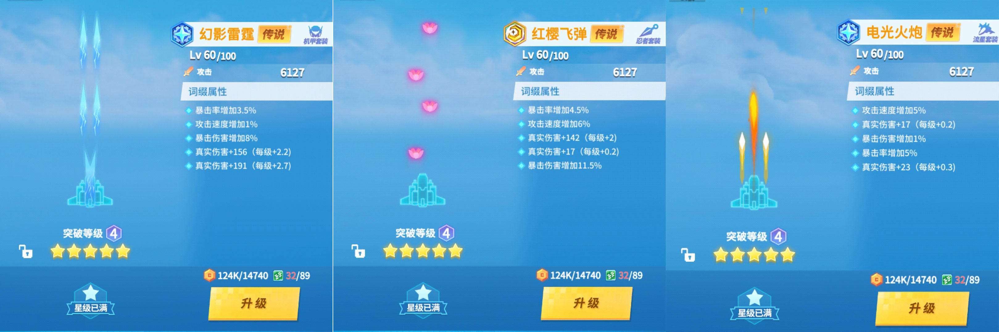 满级后,中心的三束火炮燃起巨大的火焰,对敌人的冲击感大大加强。