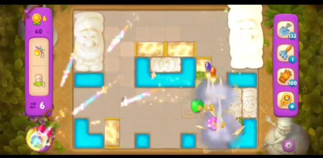 蜂蜜:特殊元素。相信这种元素是大多数玩家都比较讨厌的,特别是数量特别多的关卡,简直就是噩梦般的存在。如上图所示,不仅数量多,所占领位置又偏僻,一般道具很难炸到它,这就需要双彩的协助。蜂蜜,它会随着你每次的移动而随机吞噬周边的一个元素,提前是你移动元素时无法消除到蜂蜜,如果每走一步能消除到蜂蜜,它就不会蔓延开。消除它的办法有很多种,元素消除、道具爆破、单彩引爆、双彩全屏秒杀(双重蜂蜜除外),一般情况下,不管蜂蜜数量如何,双彩是最有效的,不过并不是所有有蜂蜜的关卡都能凑成双彩,所以,一般道具的爆破才是最好的选择。