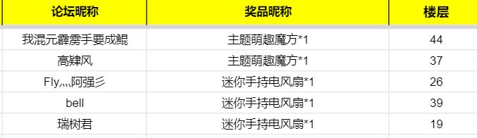 大家好,感谢大家积极的参与本次活动,现将活动中奖名单公布如下↓,没中奖的友友请不要气馁,多关注论坛最新活动公告,祝大家游戏愉快。