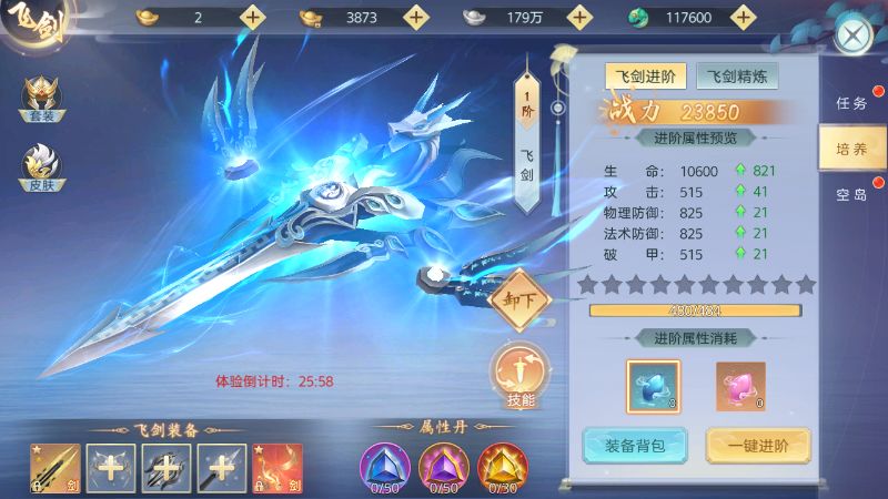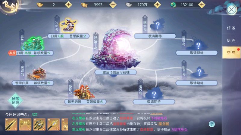6、完成任务解锁飞剑后可前往浮空主岛一层,巅峰60级时时开放浮空主岛二层,二层可获得极品幻化外形