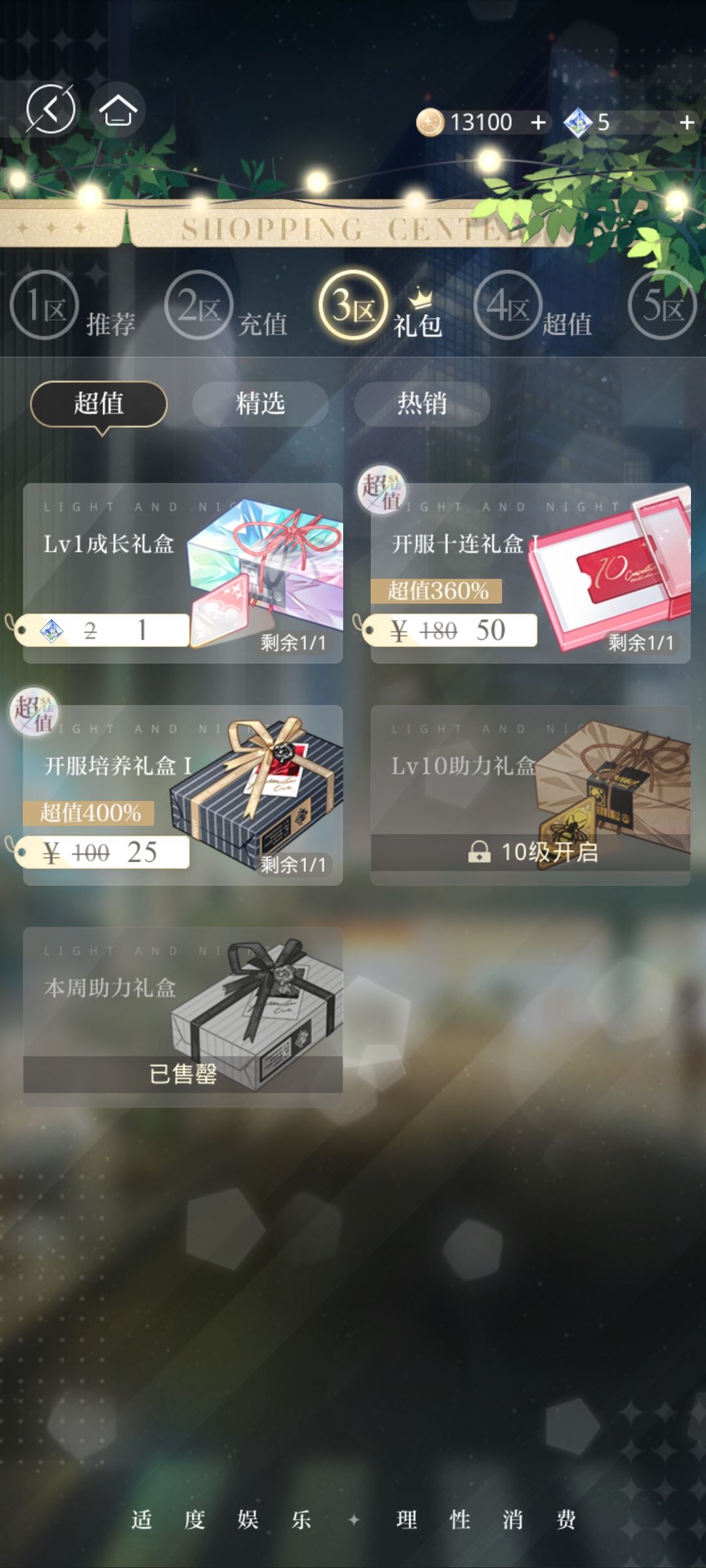 我会把氪金建议放到后面,我们先了解购物的五个分区。