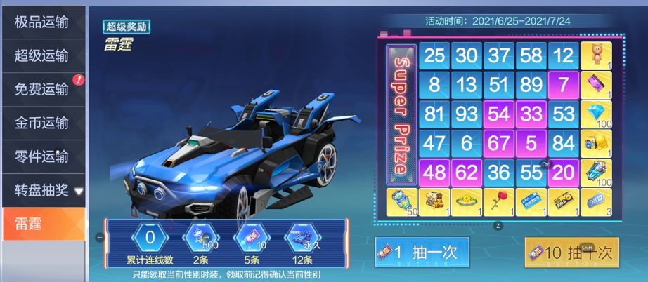 全新的赛车获取活动「一线牵」闪亮登场,日常好礼缤纷送不停。累计完成连线数12条,即可解锁获取全部道具,获得永久S级赛车G4SMAX雷霆雷霆!亮蓝车身的雷霆之姿,在赛场上冲刺不停~活动时间6.25-7.24日,机不可失,失不再来~各位赛车手可要准备好咯~