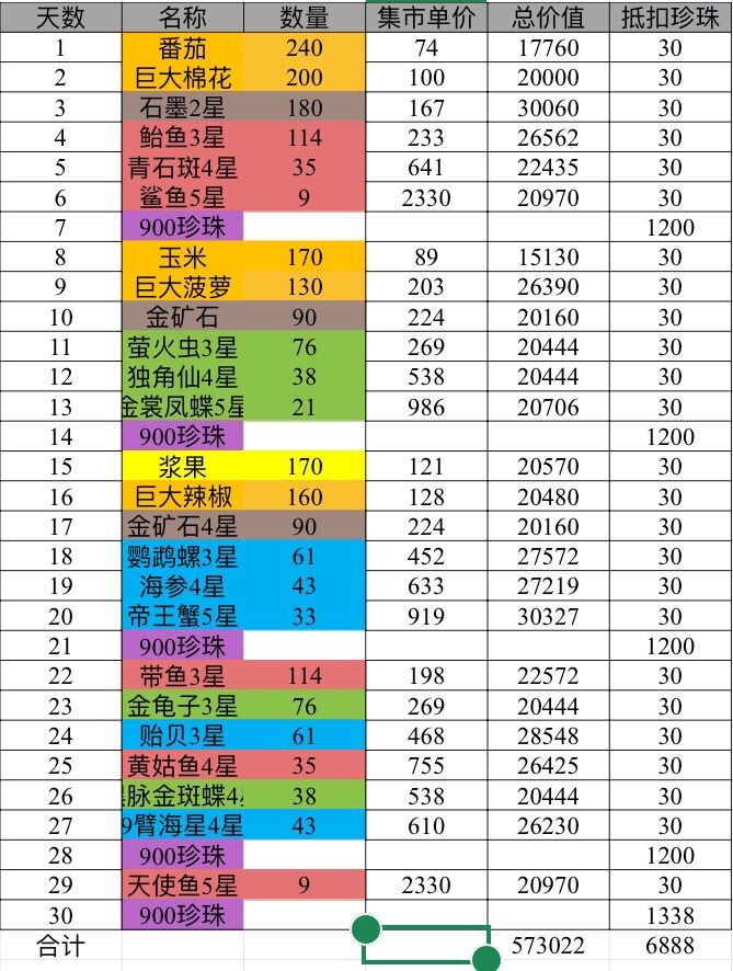 大虫子这一套总共花了4500珍珠+57w3金币,等于用金币节省了2388珍珠,1珍珠:240金币,比我之前大矿套1:215贵一些。