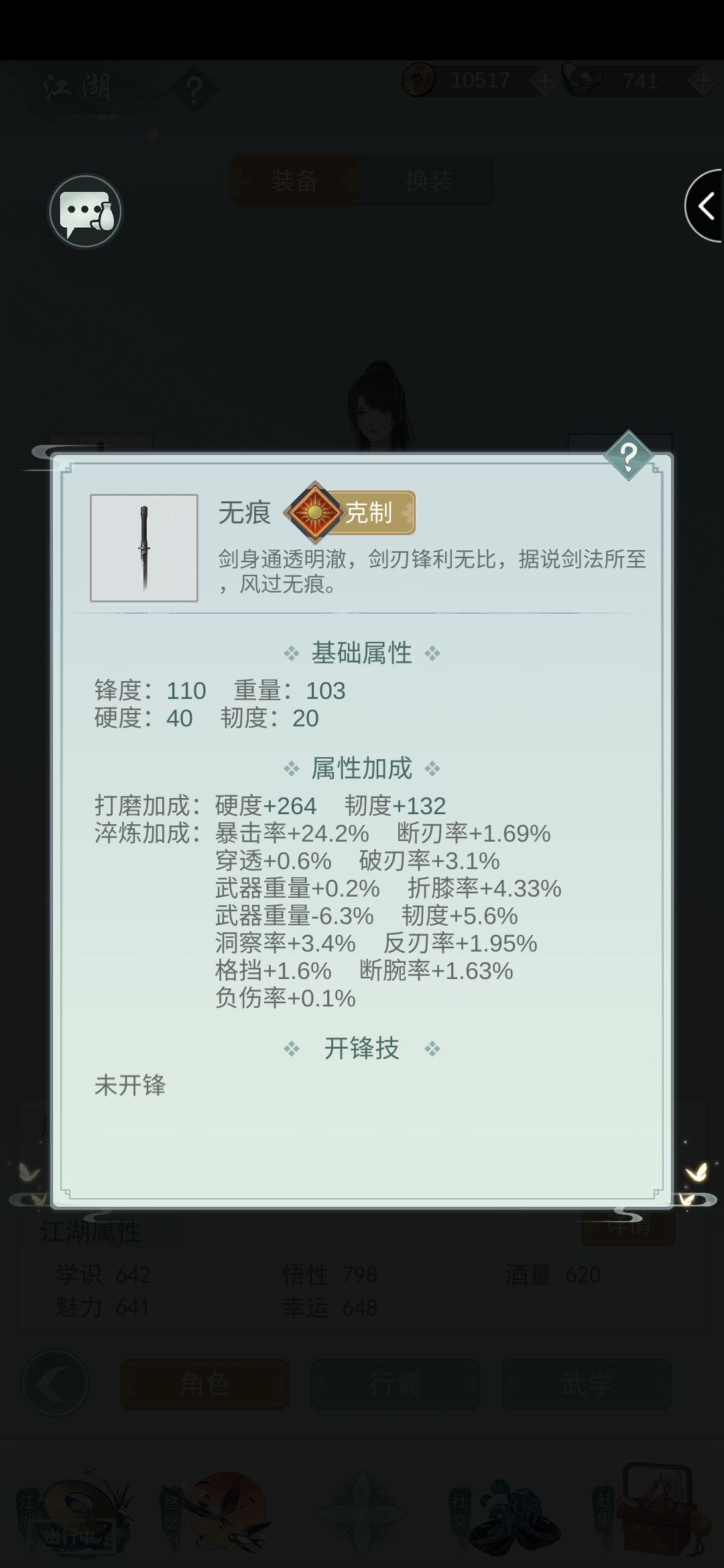 这是我的无痕剑,我洗了7个暴击磁条,不知道有没有人可以和我一样,这样的暴击率,很适配我的打法。