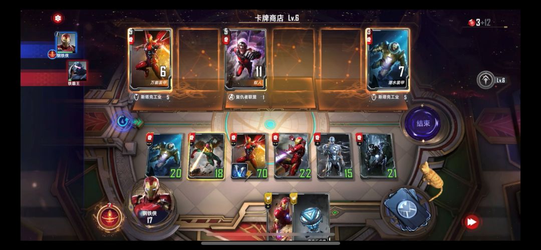 购买究极钢铁侠(打出 打出后我方角色+2战斗力,直到下一场战斗结束)放置于第五位,替换掉佩珀·波兹