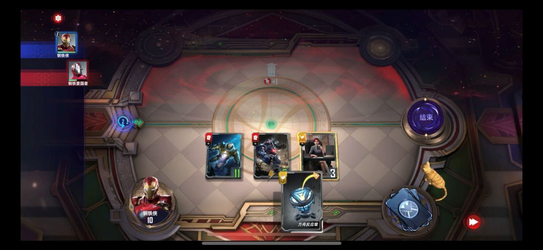 购买究极钢铁侠(打出 打出后我方角色+2战斗力,直到下一场战斗结束)放置于第四位