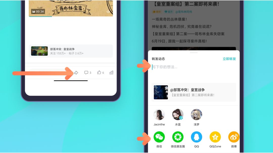 转发按钮点击将会调起分享和转发整合的界面了哦,方便大家更快捷地使用对应功能。