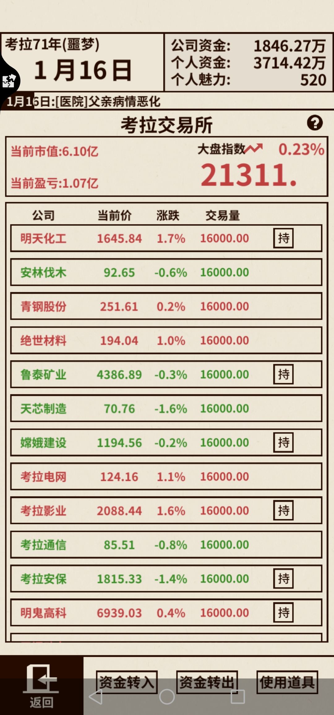 重点!重点!⑥这个版本时光鸡有bug,使用后会使股票不可买卖,使用时光鸡后退出游戏重新进入这个bug就会被抵消。(切记切记)
