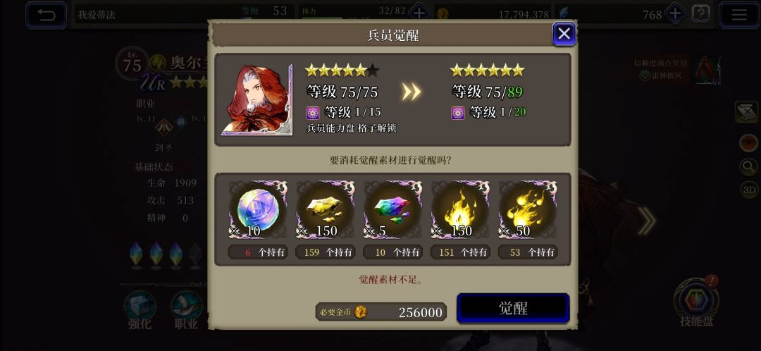 然后就说说难弄的觉醒材料,记住只刷双倍的材料本(建议只刷最后一层刷五六星,4星和以下商店金币买)。没想要的双倍属性觉醒本,体力就要拿来刷剧情,现在双倍掉落。多刷材料升职业等级。觉醒材料很废体力,双倍再刷(实在很想觉醒主力建议用暂时不需要的其他属性在商店换)
