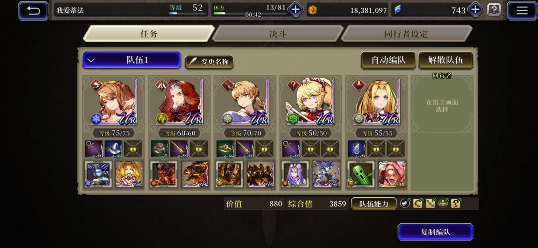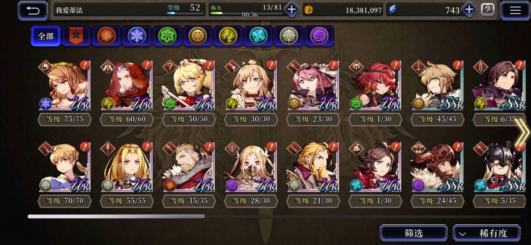 开局角色选择,这游戏角色要点满技能最少要三突破满觉醒,所以数量太少的ur就算厉害要只能先放仓库(没突破等级低,技能少)先推荐几个好突破的,送的冰法,联动抽的剑圣(抽剑圣肯定有不少拉姆萨,也先用着)主力三个就有了。其他二个推荐下面几个(这都是强度高的,如果你这几个好角色数量多可以上)