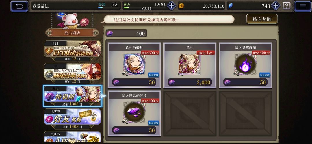 说了觉醒材料就说下碎片商店(召唤旁边那个)这个商店是很重要的,觉醒材料很多靠这里,记住到时间了就买,记得刷新,第一次免费第二次10钻,后面的看自己钻多少。建议金币能买的全买完,开局金币很多。后面再根据需求买。
