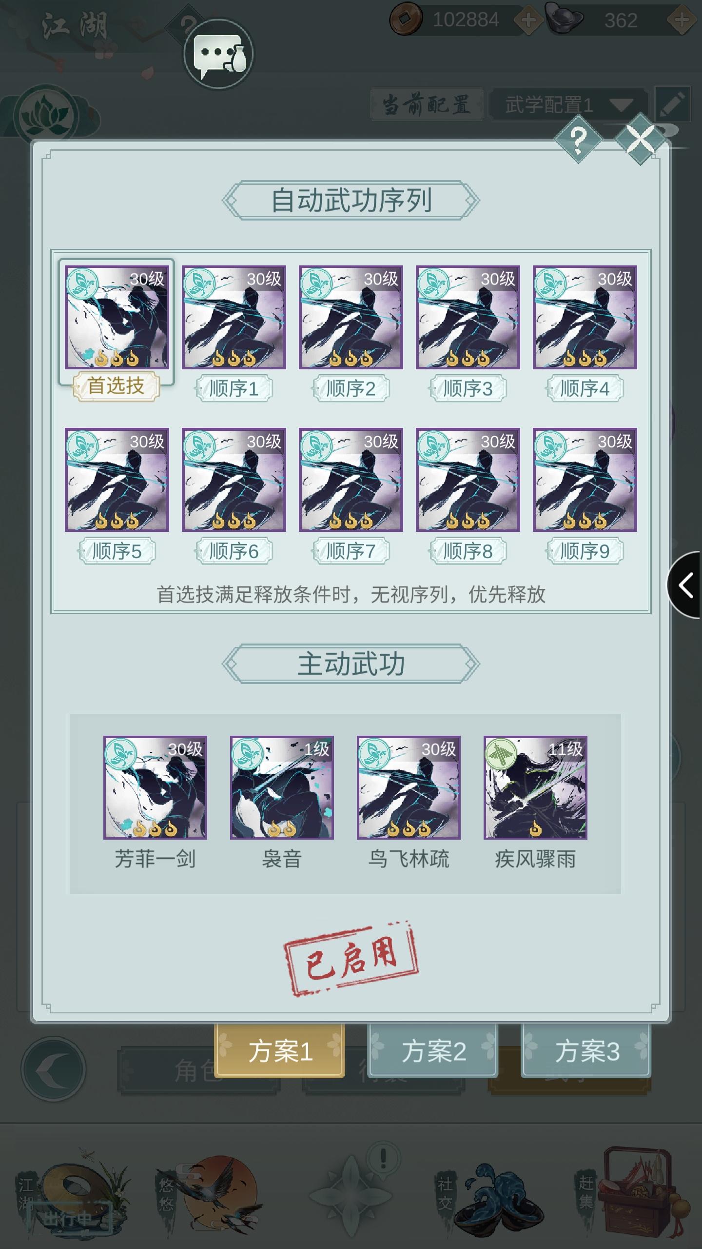 我优先点内功血量多,武功只用两个因为剑意不够。