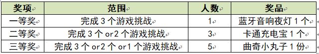 在评论区完成3个、2个和1个游戏挑战的玩家中抽取三等奖5名