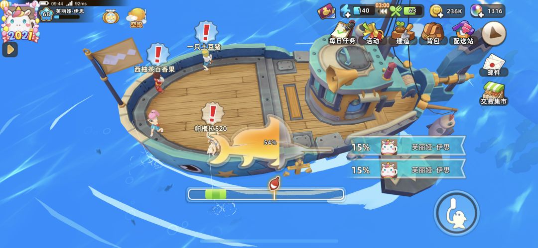 自从一条时间从原来的十分钟调整为八分钟之后,撞鱼几率就更高了,今天四个人同时撞,只能牺牲一个人,拉另外的三个人,不然谁都拉不起来,这样就浪费了一分钟的时间。后面还有两次三人同时撞,两次次两人同时撞,这特别浪费时间,建议把钓鱼模式也改成鱼群,这样就不存在因为撞鱼而浪费时间拉杆的情况了。