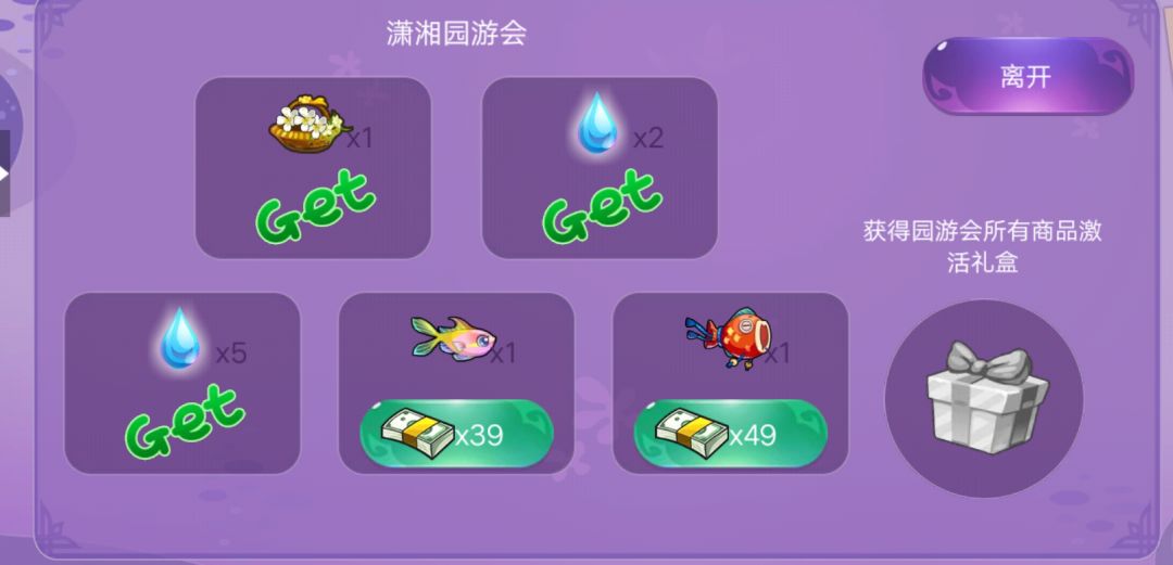 目标:使用潇湘泪、花魂合成红楼鱼,兑换稀有鱼;