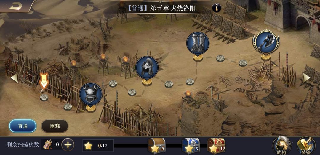 普通版获取的是装备+其他资源,而困难版则是获取将魂+其他资源,在挑战过程中,完成3星、5星、9星、12星挑战则能获得元宝,通关时间在45、60秒内,分别能获得不同等级的额外奖励,完成12星的关卡后才能继续下一关的扫荡。