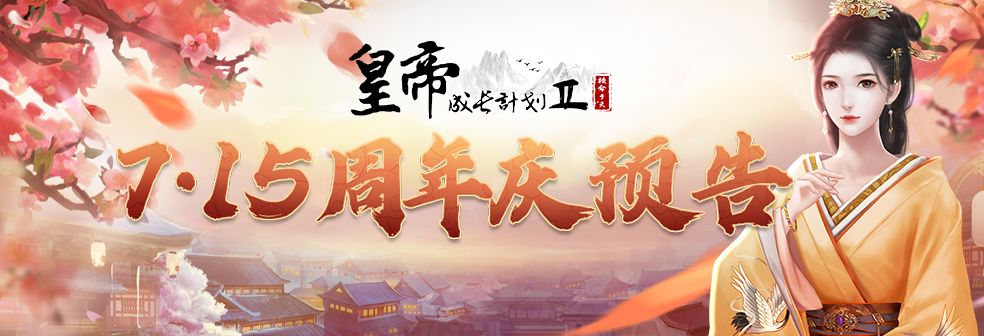 【爆料】《皇帝成长计划2》7月15日周年庆倒计时开启,版本预告第一弹!