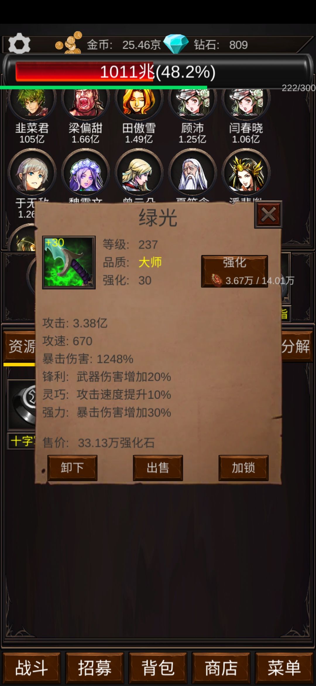 武器,也有随机属性。不要一看到武器就强化,强化石永远是这个游戏最却的东西。分解强化装备,大概损失一半的样子。除了物理攻击以外,还有攻速,爆伤的随机属性。我见过最多是5属性的武器。