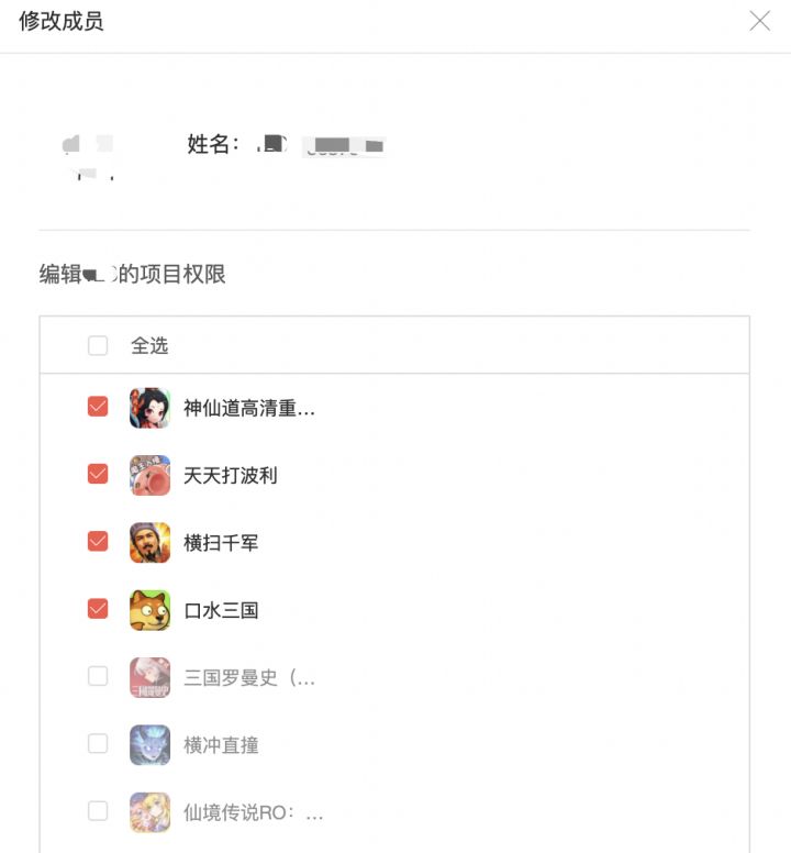 3. 勾选所需权限的项目,完成配置