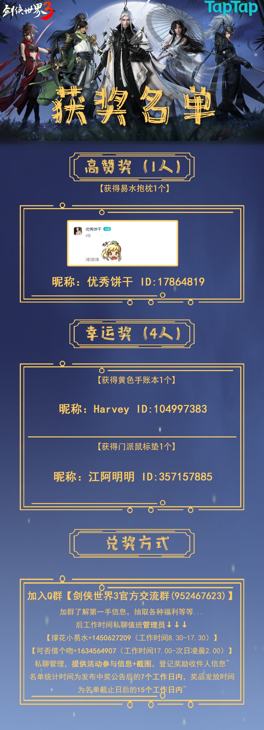 恭喜以上获奖少侠~ 没得奖的少侠也不要灰心鸭|•ω•)ノ 未来还有更多有趣的活动,请各位保持关注哦~