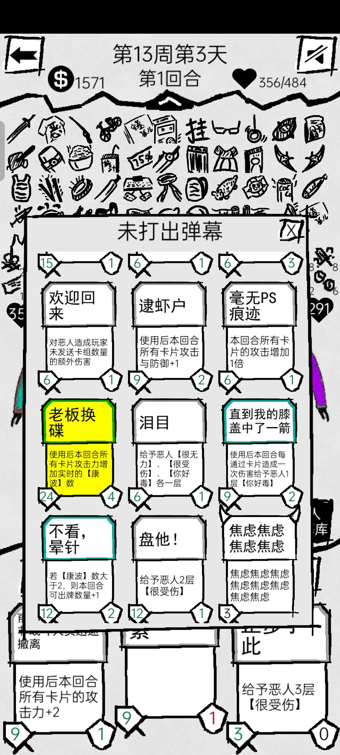 随机事件摸到的那个骰子随机卡,每次摸完卡后打恶人,如果第一回合摸到一些诡异的牌,再操作一两部动作,就会无法操作,不能出卡和过回合,担心这个bug出现的同时导致游戏卡到连自杀都没办法,果断一张牌不敢点就自杀了。